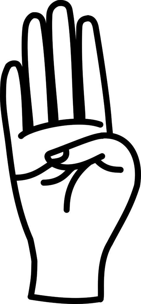 Βήμα 1: Σηκώνει το ένα χέρι ψηλά με ενωμένα τα δάχτυλά και τοποθετεί τον αντίχειρα στην παλάμη.